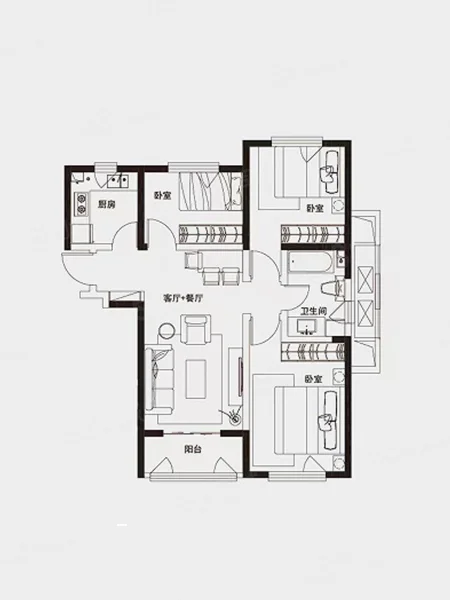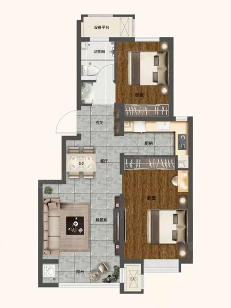 2 室 1 厅 1 卫
