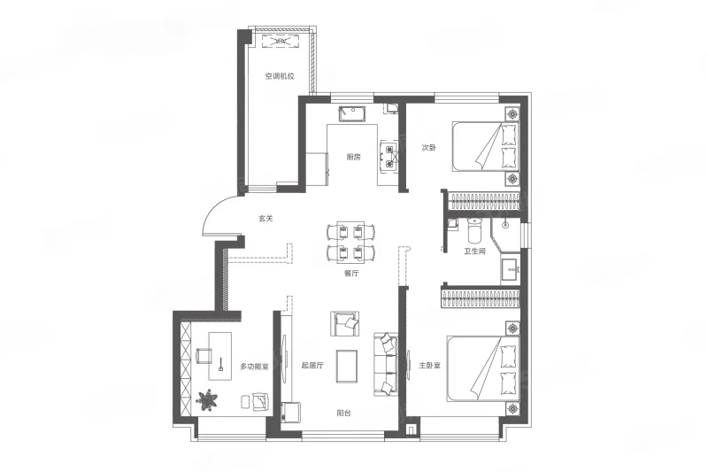 2 室 2 厅 1 卫