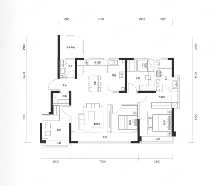 3 室 1 厅 2 卫
